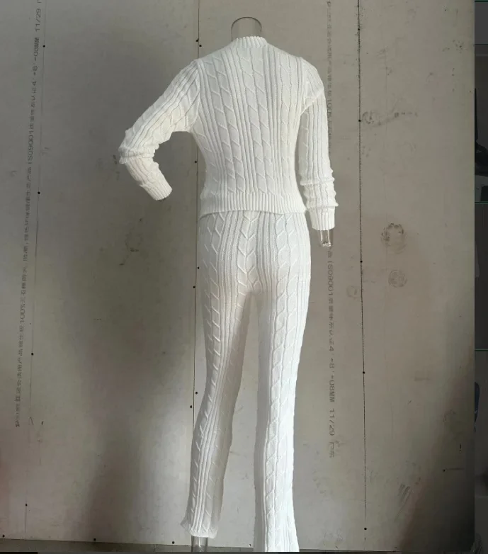 Tops and Pants Suit Female. Suéter y Pantalón de Punto Suave Beige