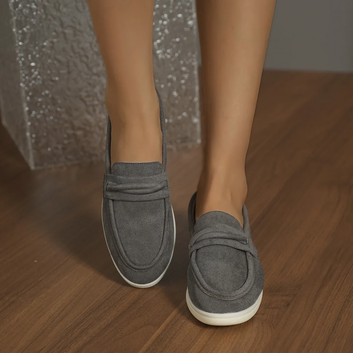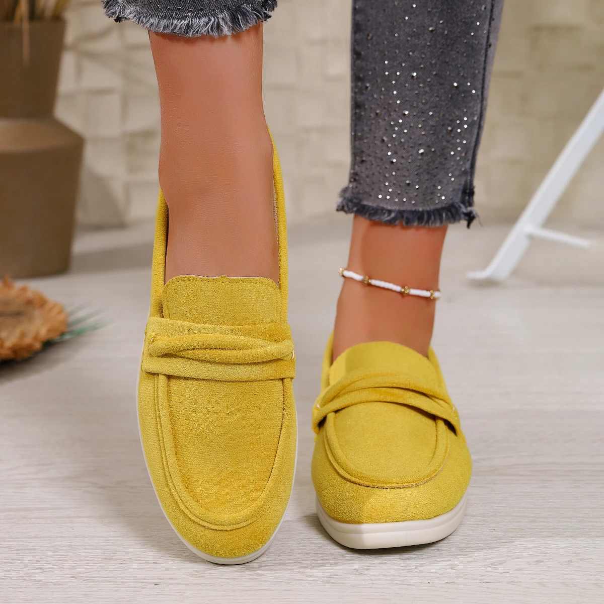 Zapatillas para mujer elegantes y cómodas Style Lazy One-Piece , Large Size Retro Flat Comfortable Beanie Shoes
