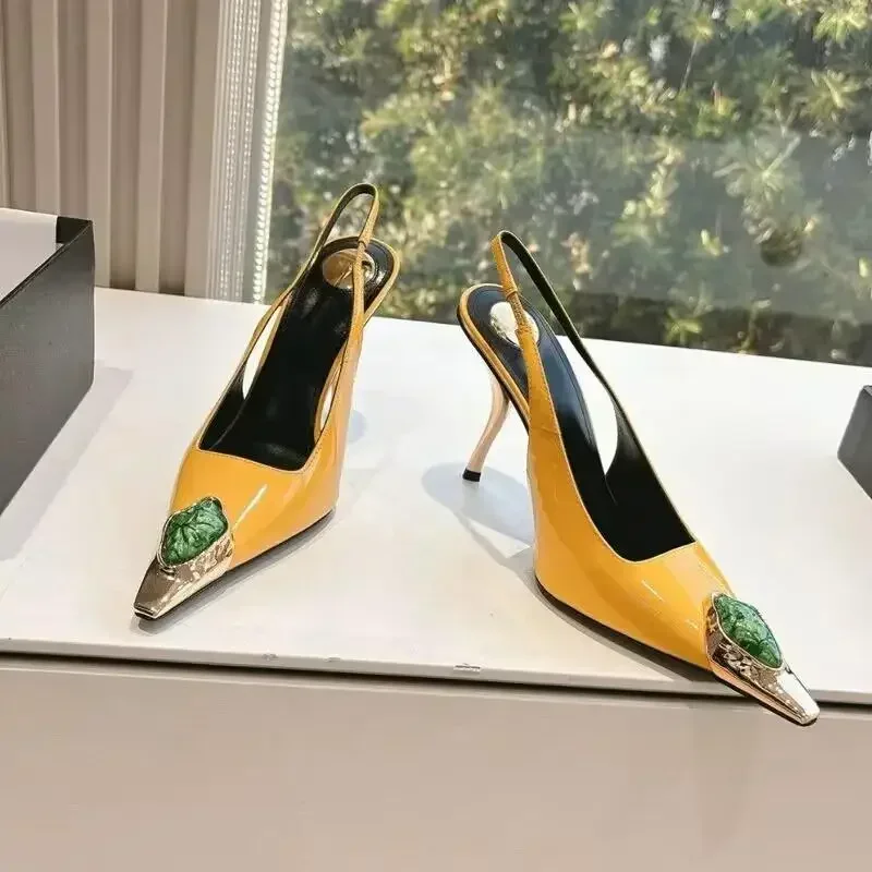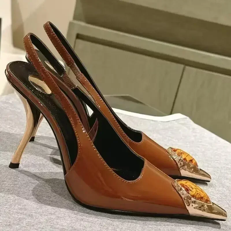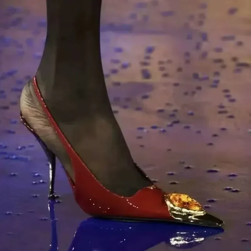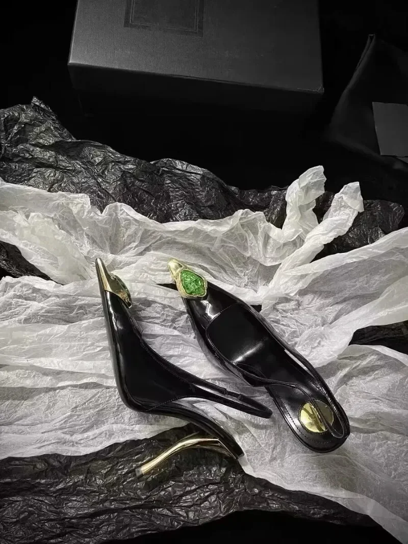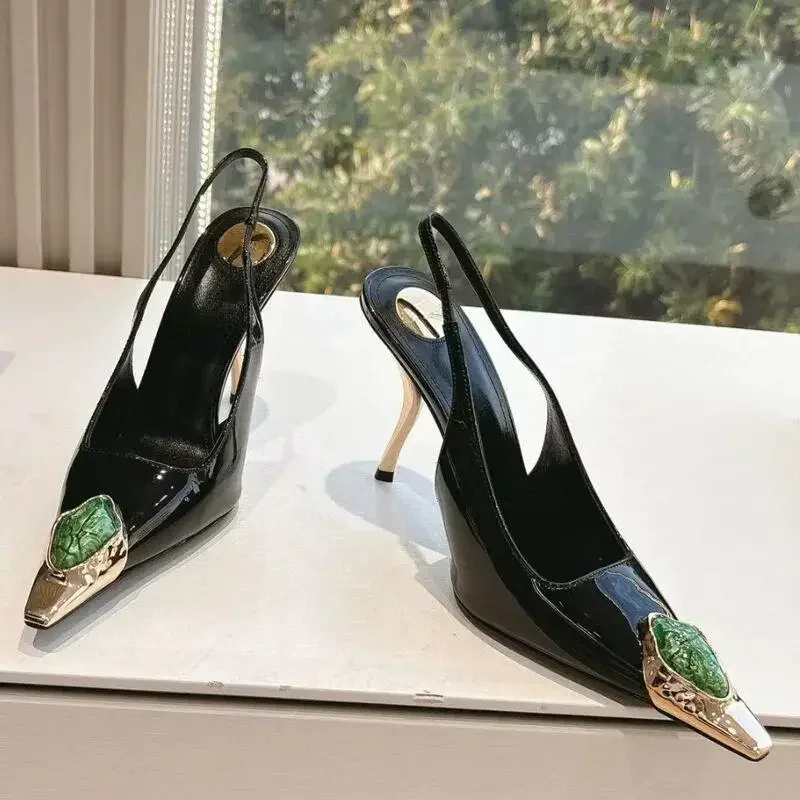 Zapatos de tacón elegantes para mujer con detalles metálicos  Luxury Metal Jewel Decoration Heels Women 2025
