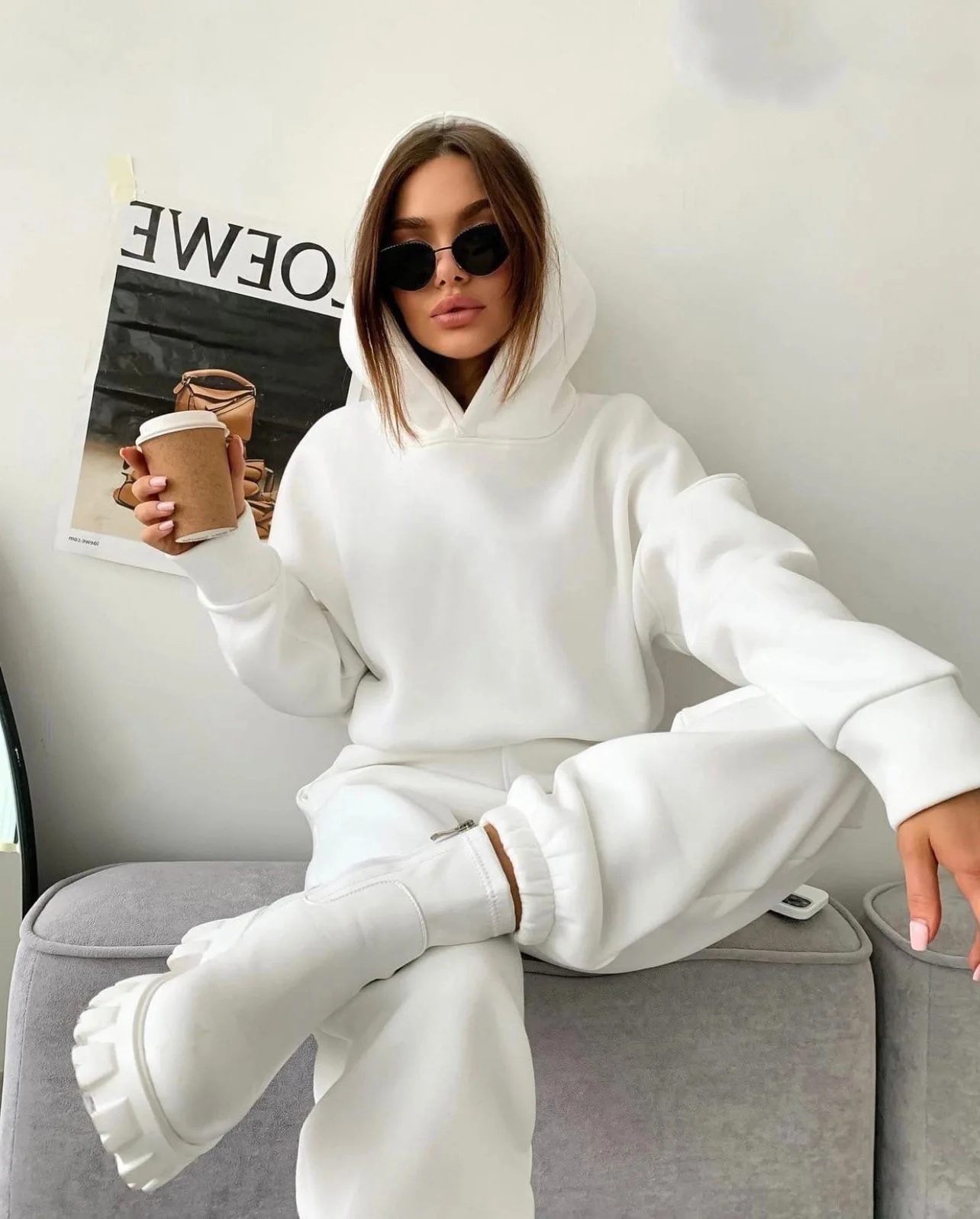 Pullover Hooded Tracksuit Women Two Pieces Pant Sets Sweatshirts Pockets Pants Suit Thick Elastic Waist Spliced Sporty Autumn