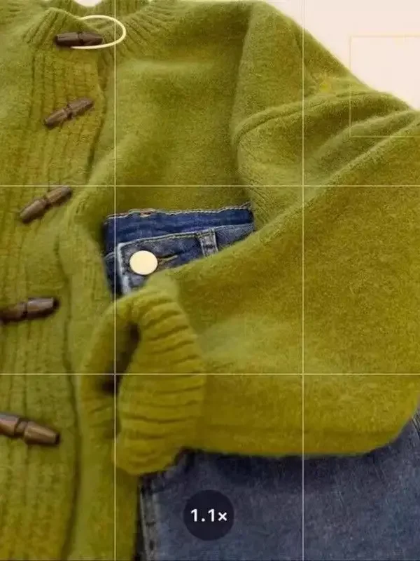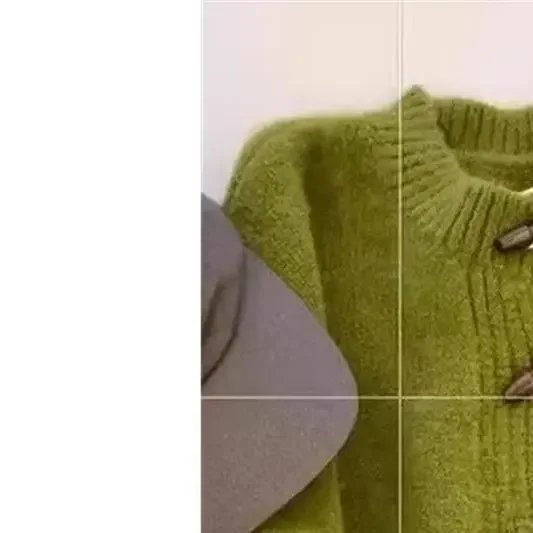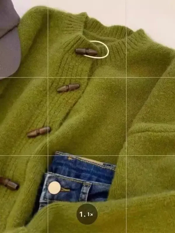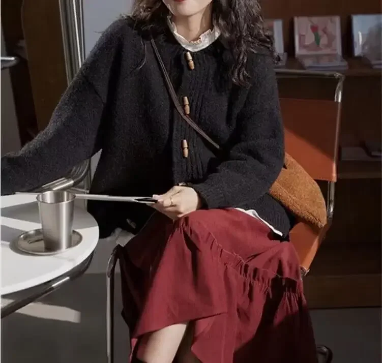 Thickened Bear Fur Knitted Open Cardigan Women's. Cardigan con Botones de Madera – Estilo Clásico & Cozy