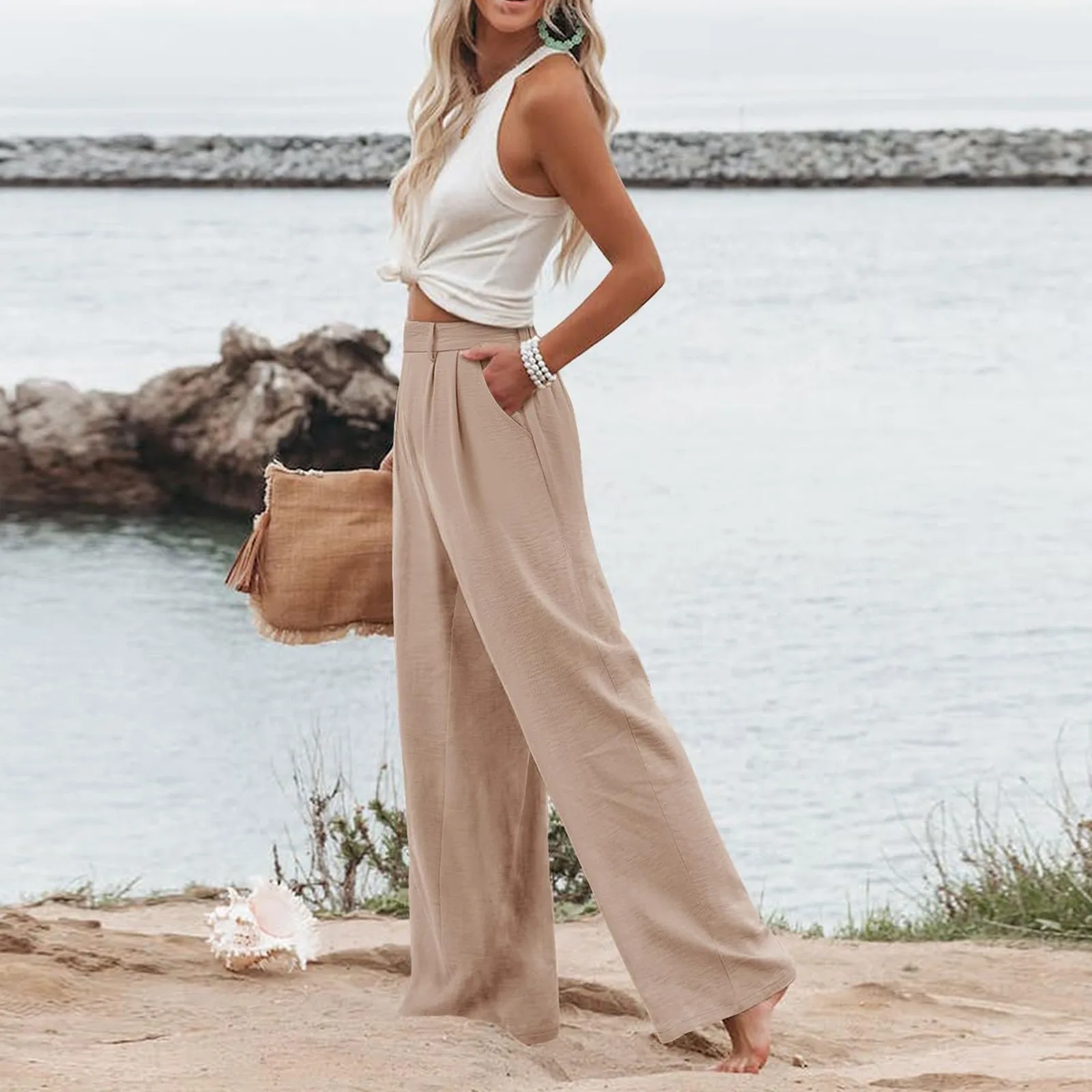 Women's Wide Leg Pants High Elastic Waisted In The Back Business Work Trousers Long Casual Pants